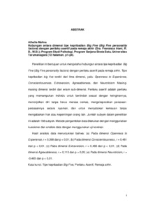 Melina, Athalia (2009) Hubungan Antara Dimensi Tipe Kepribadian Big Five (The Big Fivepersonality Factors) Dengan Perilaku Asertif Pada Remaja Akhir. Skripsi thesis, Universitas Tarmanagara.