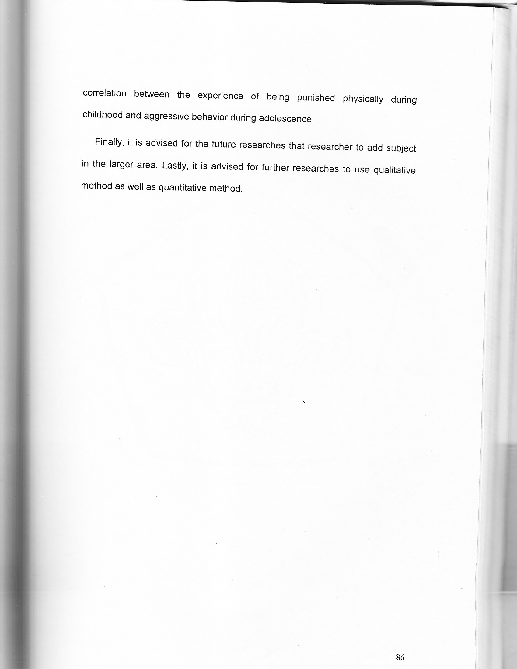 Finally, it is advised for the future researches that researcher to add subject in the larger area. Lastly, it is advised for further researches to use qualitative method as well as quantitative method. "