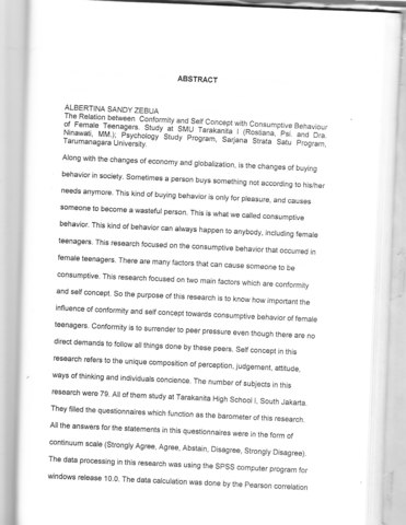 Zebua, Albertina Sandy (2001) Hubungan Antara Konformitas Dan Konsep Diri Dengan Perilaku Konsumtif Remaja Putri. Skripsi thesis, Universitas Tarumanagara.