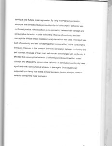 Along with the changes of economy and globalization, is the changes of buying behavior in society. Sometimes a person buys something not according to his/her needs anymore. This kind of buying behavior is only for pleasure, and causes someone to become a wasteful person, This is what we called consumptive behavior, This kind of behavior can always happen to anybody, including female teenagers. This research focused on the consumptive behavior that occurred in female teenagers. There are many factors that can cause someone to be consumptive. This research focused on two main factors which are conformity and self concept. So the purpose of this research is to know how important the influence of conformity and self concept towards consumptive behavior of female teenagers. Conformity is to surrender to peer pressure even though there are no direct demands to follow all things done by these peers. Self concept in this research refers to the unique composition of perception, judgement, attitude, ways of thinking and individuals concience. The number of subjects in this research were 79. All of them study at Tarakanita High School I, South Jakarta. They filled the questionnaires which function as the barometer of this research. All the answers for the statements in this questionnaires were in the form of continuum scale (Strongly Agree, Agree, Abstain, Disagree, Strongly Disagree). The data processing in this research was using the SPSS computer program for windows release 10,0. The data calculation was done by the Pearson correlation tehnique and Multiple linear regression. By using the Pearson correlation tehnique, the correlation between conformity and consumptive behavior was confirmed positive. Whereas there is no correlation between self concept and consumptive behavior. In order to find the influence of conformity and self concept the Multiple linear regression analysis method was used. The result was both of conformity and self concept together have an effect on the consumptive behavior. However in this research there is a correlation between conformity and self concept. Because of that, when self concept was merged with conformity, it effected the consumptive behavior, Conformity contributed the effect to self concept and effected the consumptive behavior. In conclusion, conformity has a significant role in consumptive behavior in teenagers. This way strongly supported by a theory that stated female teenagers have a stronger conform behavior compare to male teenagers.