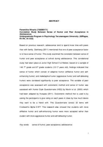 Winarto, Paramitha (2013) Studi Korelasi Antara Sense Of Humor Dengan Peer Acceptance Pada Remaja (Studi Pada Siswa SMPS ‘X’ Kelas VII Dan VIII Di Medan). Skripsi thesis, Universitas Tarumanagara.