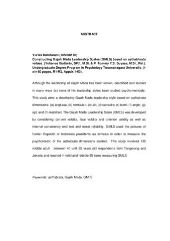 Although the leadership of Gajah Mada has been known, described and studied in many ways but none of his leadership styles been studied psychometrically. This study aims at developing Gajah Mada leadership style based on asthabrata dimensions: (a) angkasa; (b) rembulan; (c) air; (d) samudra; e) bumi; (f) angin; (g) api; and (h) matahari. The Gajah Mada Leadership Scale (GMLS) was developed by considering content validity, face validity and criterion validity as well as internal consistency and test and retest reliability. GMLS used the pictures of former Republic of Indonesia presidents as stimulus in order to measure the psychometric of the asthabrata dimensions studied. This study involved 135 middle adult between 40 until 65 years old respondents from Tangerang and Jakarta and resulted in valid and reliable 55 items measuring GMLS.
