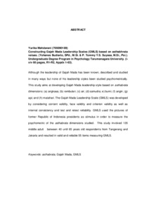 Mahdarani, Yurika (2013) Penyusunan Alat Ukur Leadership Gajah Mada. Skripsi thesis, Universitas Tarumanagara.