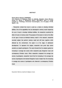 Benny Simeon, Paulus (2012) Pengaruh Musik Religius Terhadap Memory Recall Pada Remaja Yang Beragama Kristen Katholik. Skripsi thesis, Universitas Tarumanagara.