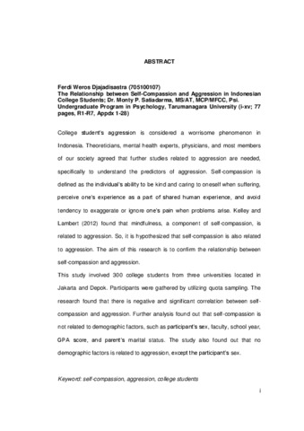 Djajadisastra, Ferdi Weros (2014) Hubungan Antara Self-Compassion dan Agresivitas Pada Mahasiswa. Skripsi thesis, Universitas Tarumanagara.
