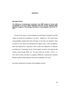 Astuti, Dwi Asih (2007) Perbedaan Motivasi Berprestasi Pada Siswa SMP Di Sekolah Berakreditasi A,B,C. Skripsi thesis, Universitas Tarumanagara.